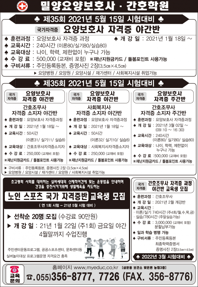 2021년 상반기 요양보호사/간호조무사 수강생모집